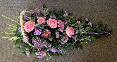 This lovely stem ended funeral basket was created by us here at Jennifleurs. These flowers have been arranged in florists foam with a constant water source so they will look fresh for as long as possible. This arrangement has been designed to appear as if the flowers have been picked from the garden and is often chosen if the flowers are to go on to a home after the funeral service. Available for delivery throughout Colchester and the surrounding area. We make daily deliveries to all the Colchester funeral directors including Hunnaballs, Coop, John J Smiths and Shepherds.