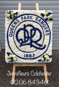 Funeral flower tribute of the QPR badge. Made by our talented florists at Jennifleurs this QPR football symbol is a very fitting fan flower tribute. This example is approximately 65cm x 65cm (2ft x2ft) and is presented on a wooden easel for ease of display (optional).