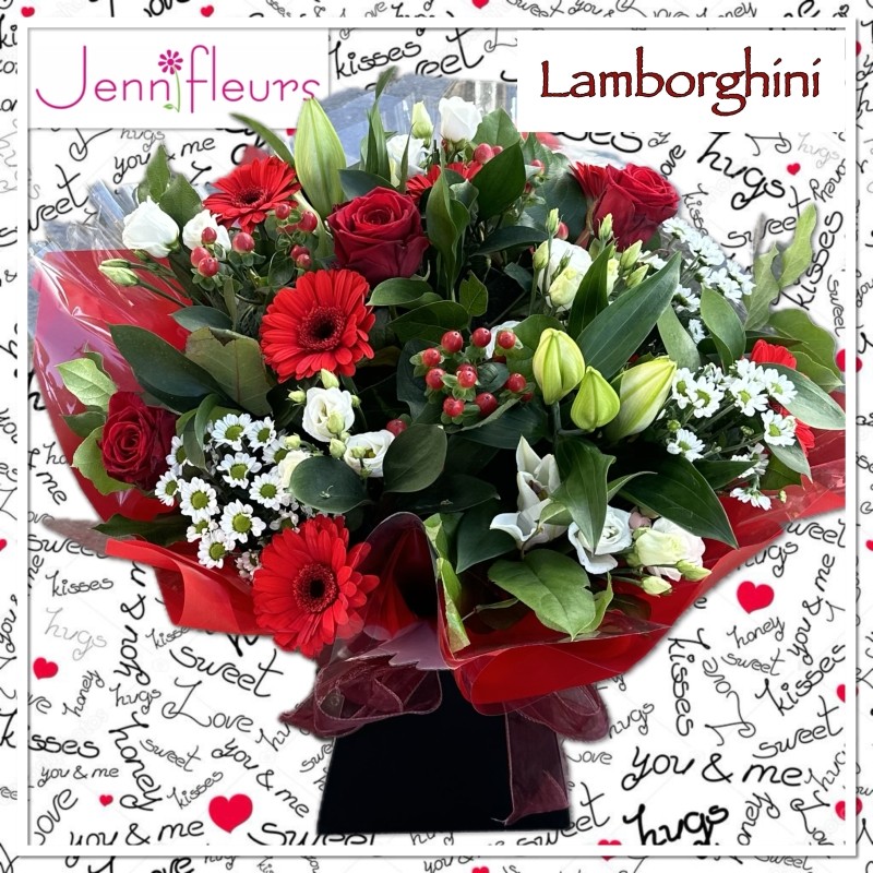 “LAMBORGHINI”, a truly sumptuous romantic gift of fresh flowers available exclusively at Jennifleurs for that special someone this Valentine’s Day . Featuring three of our top quality red rose and a gorgeous mix of complimenting red and white blooms the “LAMBORGHINI” bouquet arrangement makes for a long lasting romantic Valentine’s Day gift.